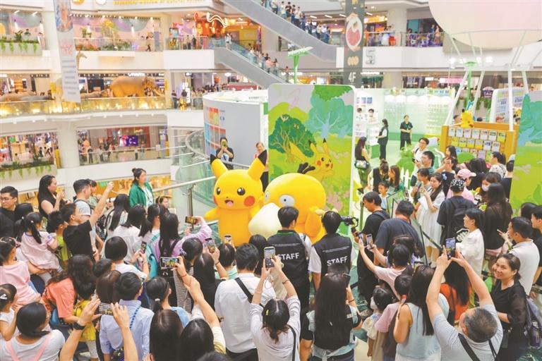 “一大早就有好多人排队,我在里面待了整整一天,淘到了好多我喜欢的产品!”宝可梦资深“粉丝”彭浩“打卡”正佳广场四楼中庭的宝可梦主题快闪后兴奋地分享道。高达7米的巨型皮卡丘气模、萌趣的宝可梦见面会,让他直言“仿佛穿越进了动漫世界”。而来自西班牙的游客Maria则对广州商圈的“萌宠互动”赞不绝口:“这是我第一次在中国看到这么多人带着宠物购物!这里的宠物友好设施太贴心了,连电梯都有提示,狗狗也能安心逛街。”