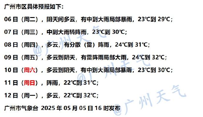 截至5月6日9时,广州多个区雷雨大风黄色预警信号生效中↓