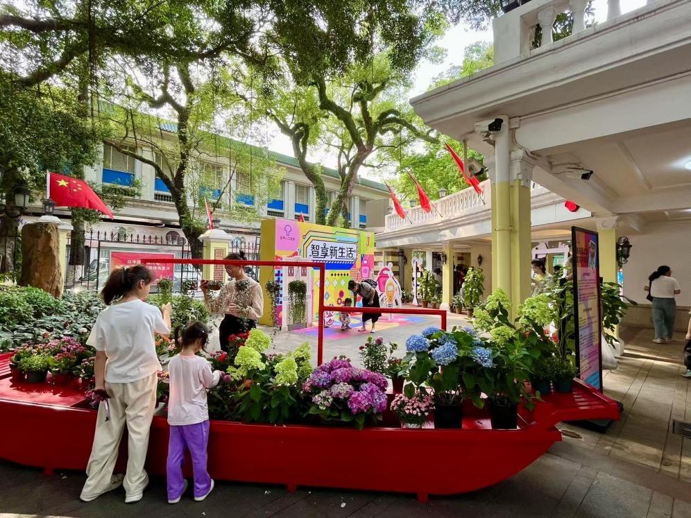 “叮!”随着手机轻震,游客的社交平台自动生成了一条15秒的广州荔湾漫游Vlog。镜头里,沙面岛欧陆风情建筑与AI绘制的七彩光轨交相辉映,配文“时空折叠的浪漫,此刻与你共享”。这个“五一”假期,荔湾区党群服务中心红旗广场变身为“科技乐园”,以“致敬劳动者,智享新生活”为主题的AI游园会连续五天在这里精彩上演。这场由荔湾区党群服务中心联合多个“阵地合伙人”共同打造的活动,采用“政府搭台、企业参与、科技赋能”的服务模式,开启党群服务的“智”变之路。