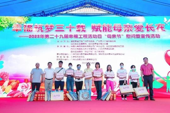 5月10日,在母亲节即将到来以及国家幸福工程成立三十周年之际,国家幸福工程广州市组委会、广州市人口福利基金会、白云区人口健康局、白云区幸福工程办公室等单位在广州白云区同德广场举行大型慰问活动,向124名困境家庭代表送上总值约30万元的慰问品和慰问金,并向全市的母亲们送上诚挚的节日问候。