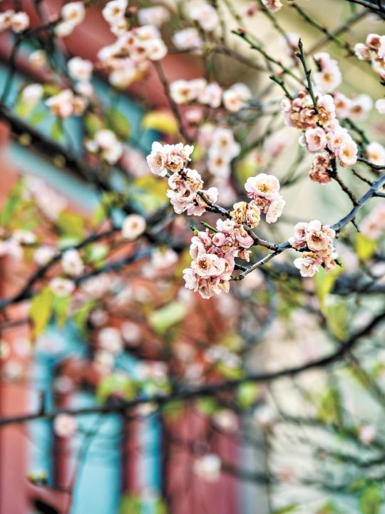 最近十多年来,纯阳观重新种上梅花,每年花开时节,游人赏梅络绎不绝,摄影爱好者云集,古建筑与梅花相映成趣,宛若水墨长卷。而长廊另一侧,岭南梅社书画院的展厅里,一幅幅新作正诠释着“折衷中西,融汇古今”的百年艺术理念。这座古老与新生交织的小山岗,焕发出跨越时空的蓬勃生机。