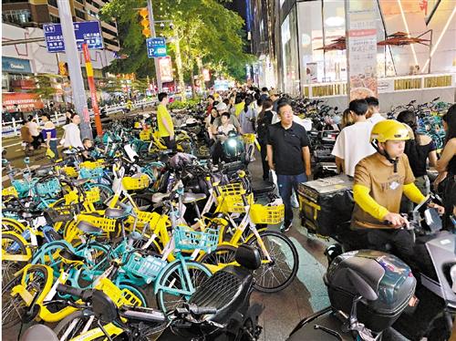 大洋网讯 不少市民反映,在江南西地铁站B出口位置,人行道路况相当混乱,不仅因为大量乱停放的电动自行车和共享自行车导致“无路可走”,行人被碰撞的现象也常有发生。