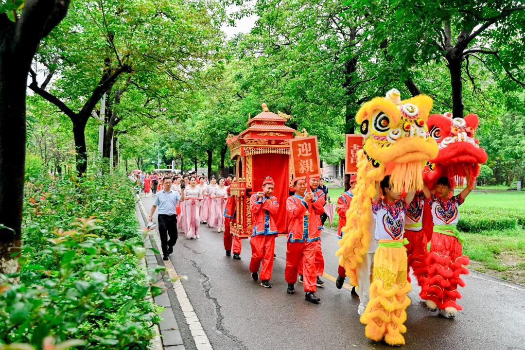 白云区在设计之都举办白云区第一届“甜蜜白云”婚俗文化活动,发布“甜蜜白云”品牌,开展56个民族婚服表演、传统岭南婚礼等活动,推动“甜蜜消费”从单一场景到全域生态升级。“越秀越爱”集体颁证、天河“流沙绘同心”沙画制作、花都区“爱情跑道”、南沙区“南湾·囍市”、从化“甜蜜集梦”等活动缤纷开展,为新人及亲友们献上一份份惊喜。