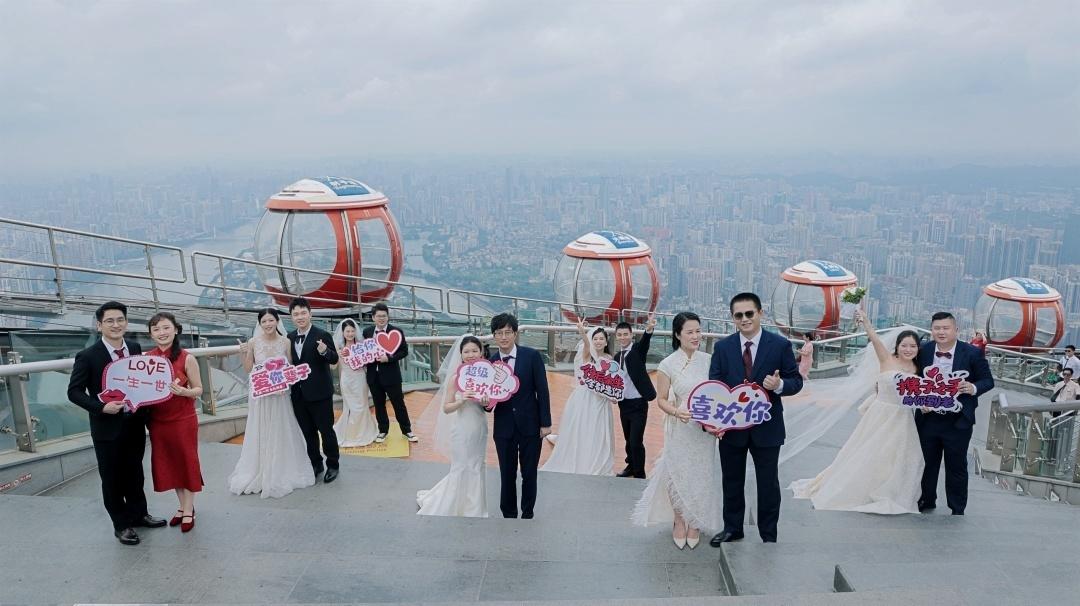 海珠区在广州塔举办“海誓山盟 珠联璧合”活动,发布海珠区婚庆线上平台“幸福模范”及婚庆MV《一生一世》,进一步推动婚俗改革和甜蜜经济融合发展。