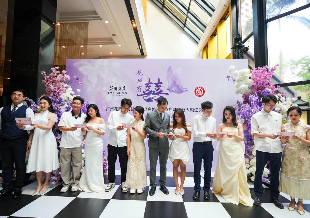 5月20日,广州市越秀区民政局联合广州花园酒店,共同举办广州花园酒店结婚登记户外颁证点启动暨新人颁证仪式。今年是广州花园酒店开业40周年,其“花城有囍”结婚登记户外颁证点正式启用,成为越秀区首个设在酒店的结婚登记颁证点。