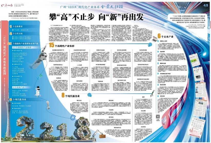 产业兴,则城市兴;产业强,则城市强。作为我国重要的中心城市、粤港澳大湾区核心引擎,广州立足资源禀赋、产业基础、科研条件,经过深入调研、反复论证,提出加快建设“12218”现代化产业体系,擘画了重点产业发展的新蓝图。这是广州落实党中央决策部署和省委工作要求的战略之举、关键之为,也是一场竞速赛、耐力赛、接力赛。