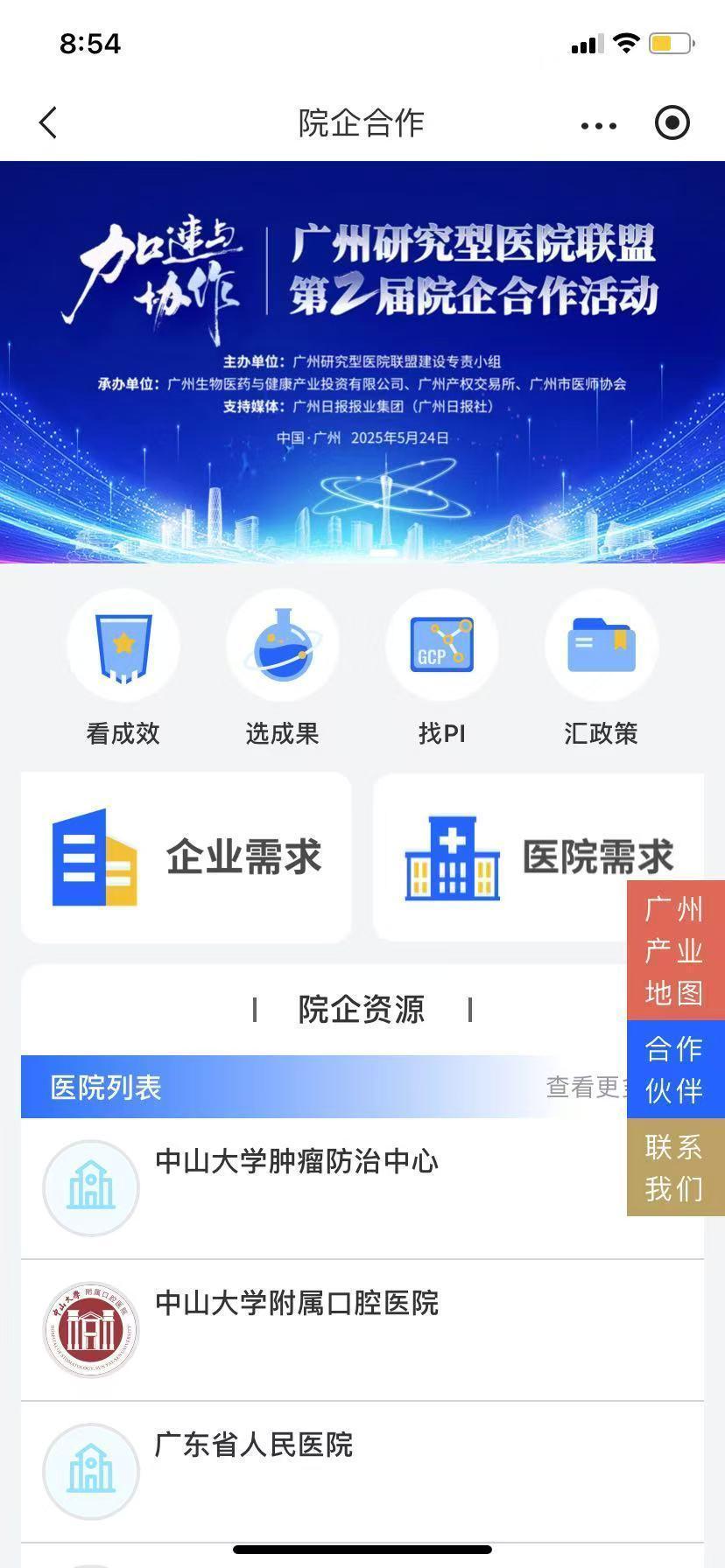 广州研究型医院联盟与广州日报报业集团(广州日报社)携手打造的首个院企资源交互数字平台也在活动现场亮相,以“数字赋能、资源聚合、生态共建”为核心,构建生物医药领域全要素对接枢纽。该平台也从今天起正式在广州日报新花城客户端的服务板块中亮相。