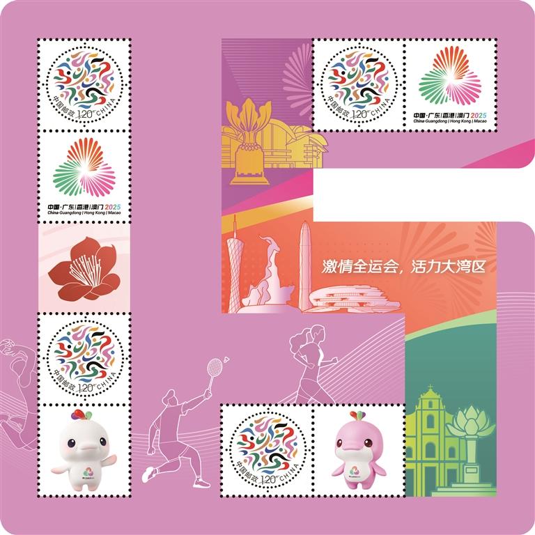 本次发布的主题纪念邮品包括《悦动十五运》个性化邮票、《圆梦湾区·三地同辉》珍藏邮折、《中华人民共和国第十五届运动会纪念封》等9款产品,分别是4款个性化邮票、2款纪念邮品、2款湾区地标明信片及1款纪念封。