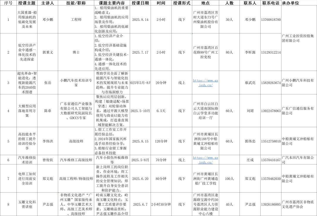 “传承红棉匠心,技能照亮前程”系列技能大师公益培训课由广州市人社局主办,广州市级高技能人才培训基地、市级红棉大师工作室、广州市职业能力建设指导中心和广州技师协会联合承办,课程全部免费。首批课程共41个主题,涵盖DeepSeek重构高效办公、无人机驾驶和拍摄、翡翠鉴赏、智能机器人技术、五轴联动数控加工实战等内容,相关课程持续至8月。