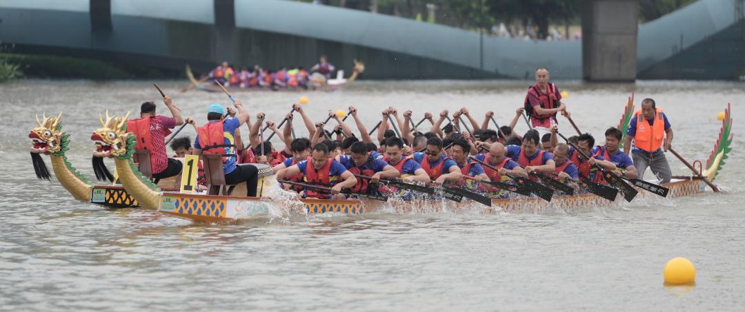 千名健儿化身“浪尖蛟龙”,驾驭各队龙舟展开巅峰对决。