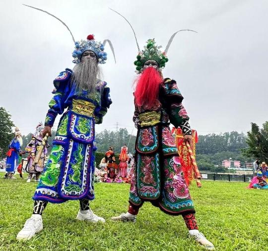 在这场英歌舞巡游表演过程中,这群潮汕少年儿童,身着传统服饰,以刚劲有力的槌法、变化多端的阵法,重现《水浒传》英雄故事,让来自全球各地的社区居民更深入地了解中华文化传统,零距离感受英歌舞的力与美。