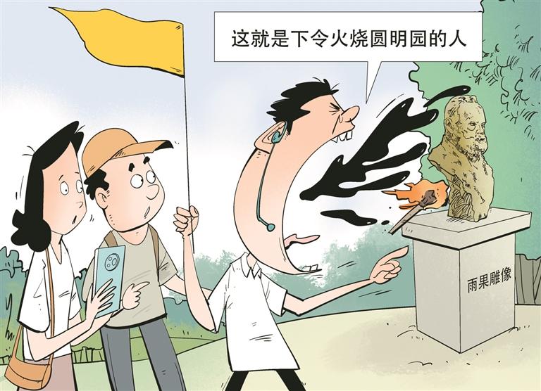 近日,一段导游讲解的视频引发争议。视频中,一名导游指着法国作家维克多·雨果的雕像,向游客介绍:“这就是下令火烧圆明园的人。”何其离谱?“建议重新好好读读语文课本”“无知不是胡说八道的理由”……对此,网友批评质疑声不断。胡编乱造、信口开河,导游解说岂能胡说?这样的“伪史”又会误导多少游客?据园方回应,该导游并非景区官方导游,但事件本身值得更多追问:此人是不是正规的持证导游?这样的导游是怎么堂而皇之带团的?景区如何有效破解乱讲解之弊?