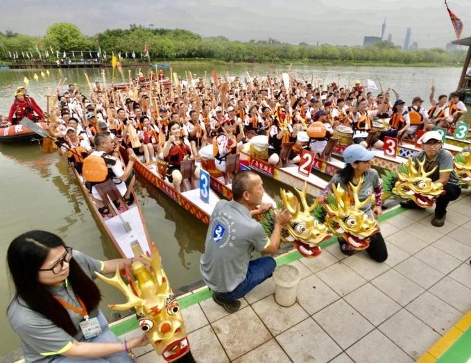 端午节早上9时,海珠湿地石榴岗河畔人声鼎沸,众多市民一家老少前来观看龙舟赛。“海珠湿地树木多、水质好,即使烈日下也不会很晒,观赏赛龙舟最好不过。”市民林女士和同学几家人提前就约好了带孩子来看赛龙舟,中午一起吃龙船饭。