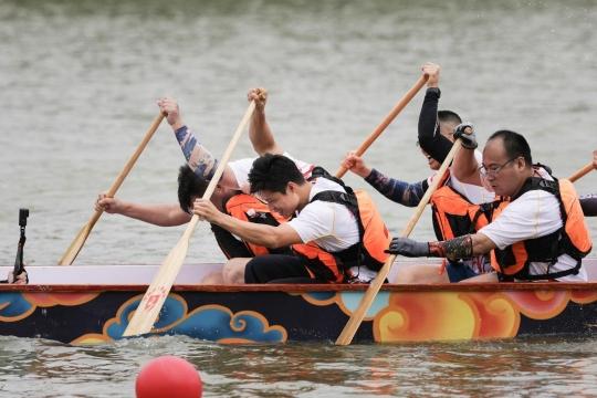 率先进行的是海珠区统一战线同心龙舟竞技赛,200余名海珠区统一战线成员组成10支同心龙舟队在赛道上劈波斩浪、你追我赶。龙舟破浪前行,鼓声震天响,选手们齐心协力,力争上游,岸边观众呐喊助威声一浪高过一浪。经过两轮次的较量,由九三学社海珠委员会组成的同心4队勇夺冠军,由致公党海珠区基层委员会组成的同心3队夺得亚军,农工党海珠区基层委员会组成的同心9队获季军。