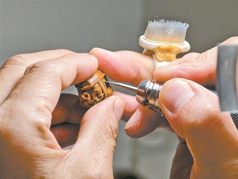 目前,彭德平以大岭村工作室为基地,连续多年举办核雕培训班。截至当前,累计培训学员数量已经达到了200多人,“我们靠作品说话,不少核雕爱好者向我们定制核雕作品。”彭德平说。