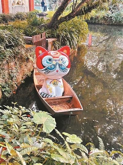 例如,在珠江公园的“湾区书屋”内,就有几只相对乖巧黏人的流浪猫长期在其中“打工”,吸引不少市民前去打卡;兰圃打造的猫咪主题IP更是堪称经典,园区内不仅有许多形态各异、俏皮的猫咪配套设施,去年12月举办的首届“猫猫驾到”跨界文化节,更是以园区内的流浪猫为主角,融合汉服巡游、AI绘猫等元素,推动游客量同比激增200%;此外,兰圃在园内咖啡馆还推出猫咪饼干,在快闪店内销售猫主题文创扇等,都深受游客好评。
