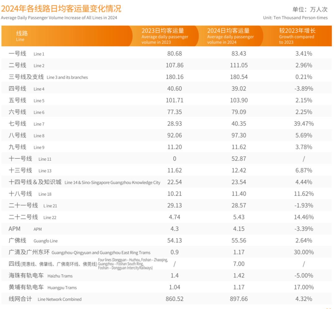 6月5日,广州地铁集团公布了2024年《年报》和《社会责任报告》。2024年,广州地铁全制式(含有轨电车、城际)轨道交通线网日均客流约898万人次,占全市公共交通出行总量的比例达70.6%,“地铁+城际”运营里程突破1000公里。