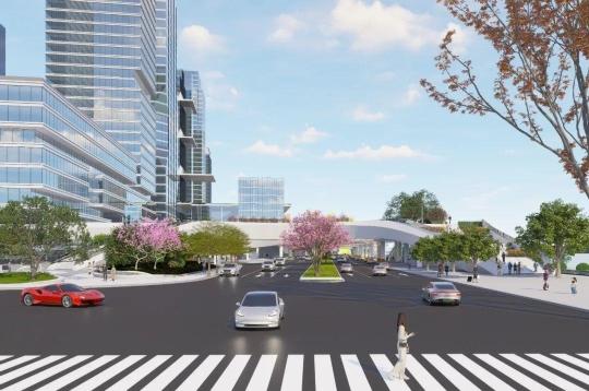 项目横跨阅江西路,连接琶洲西区写字楼与珠江堤岸