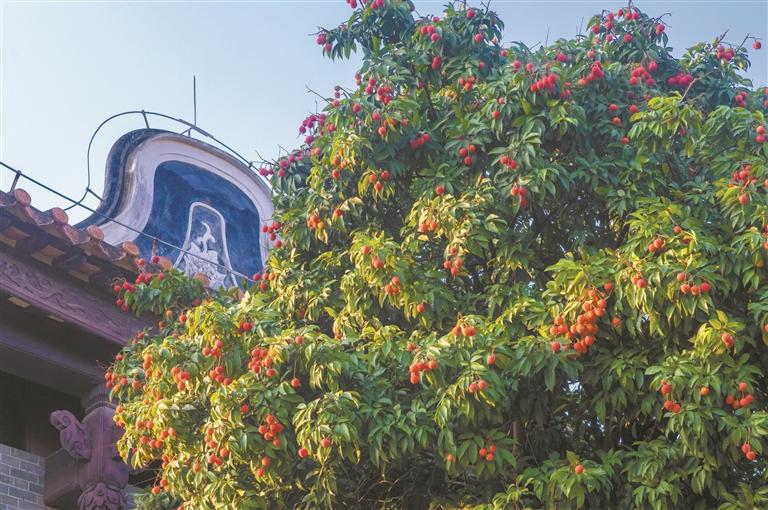 粤剧艺术博物馆内,一棵荔枝树已经进入果实成熟期。广州日报全媒体记者廖雪明 摄