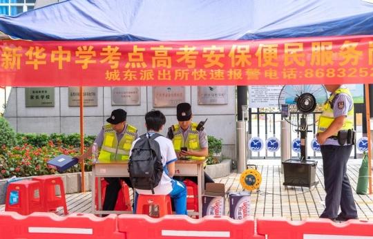 高考期间,全市每个考点都设立了“高考安保便民服务岗”,做好现场受理、快速处置涉考报警求助及应急处突的准备。考点执勤民警配合考试主管部门为遗失、忘带身份证的考生提供远程身份查验和紧急临时身份证办理等服务。以番禺区为例,截至8时50分,番禺公安高考首日上午已为7名考生补办身份证明。