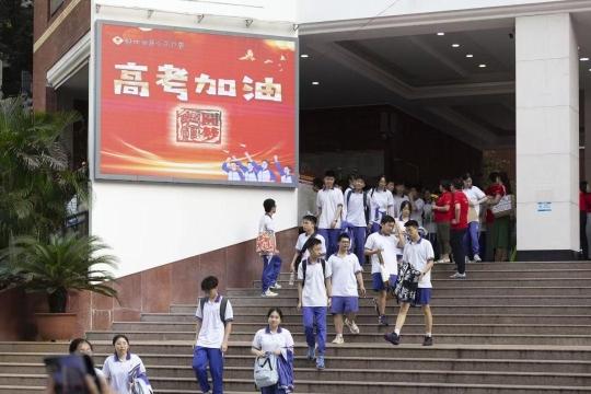 6月7日17时,高考数学考试结束。广州市第十六中学考点考生相继走出考场。