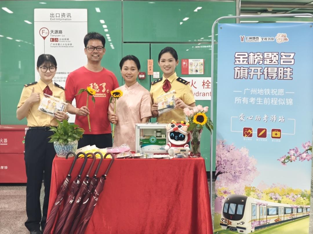 同时,地铁公交协同配合,为考生和家长共同营造有序的赶考环境。广州地铁集团团委在五羊邨、市二宫、从化客运站等12个邻近考点的车站设置“爱心助考驿站”,为考生精心配备了爱心文具袋、便民药箱等物资,并针对“龙舟水”天气配备一次性雨衣和便民雨伞,供考生免费取用和租借。广州地铁还在陈家祠、东山口、鹭江、华师、天河公园、珠江新城、北滘公园等7个驿站摆放“许愿墙”,供考生许愿寄语,并在线网车站播放祝福广播,为考生加油打气。公交站场管理公司也在多个考点及枢纽站场设立“爱心助考加油站”。