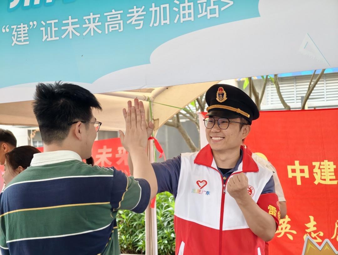 高考期间,中建集团及旗下多家子企业积极投身志愿服务,在全市多个考点设立“建证未来—高考加油站”。站点内,爱心文具、饮用水、防暑药品等物资一应俱全。“作为一名驻穗央企青年,能护航高考学子人生重要时刻,意义非凡!”参与本次高考志愿服务的中建青年志愿者小林道出了众多志愿者的心声。