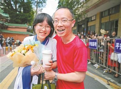 家长给刚出考场的考生一个大大的拥抱。广州日报全媒体记者王燕摄