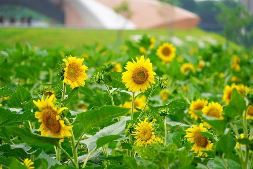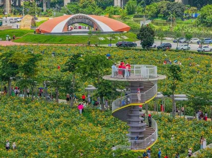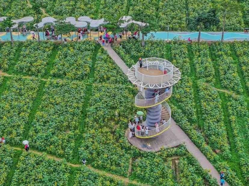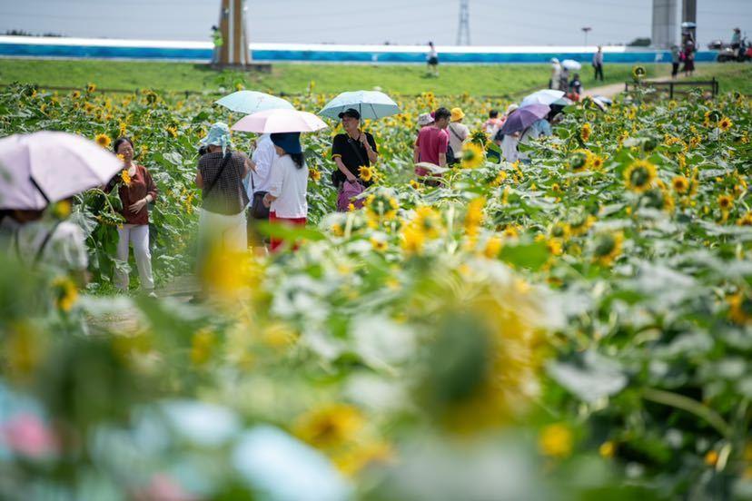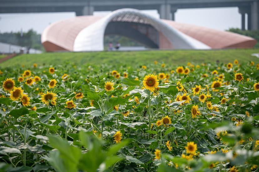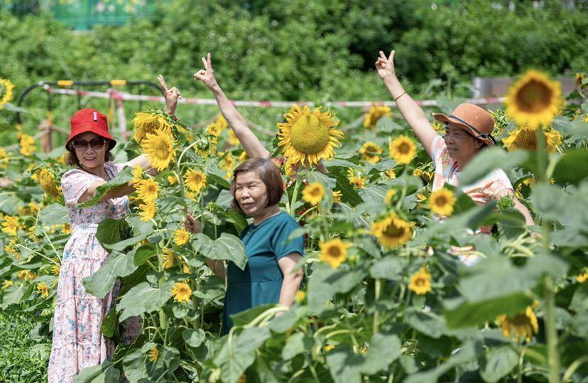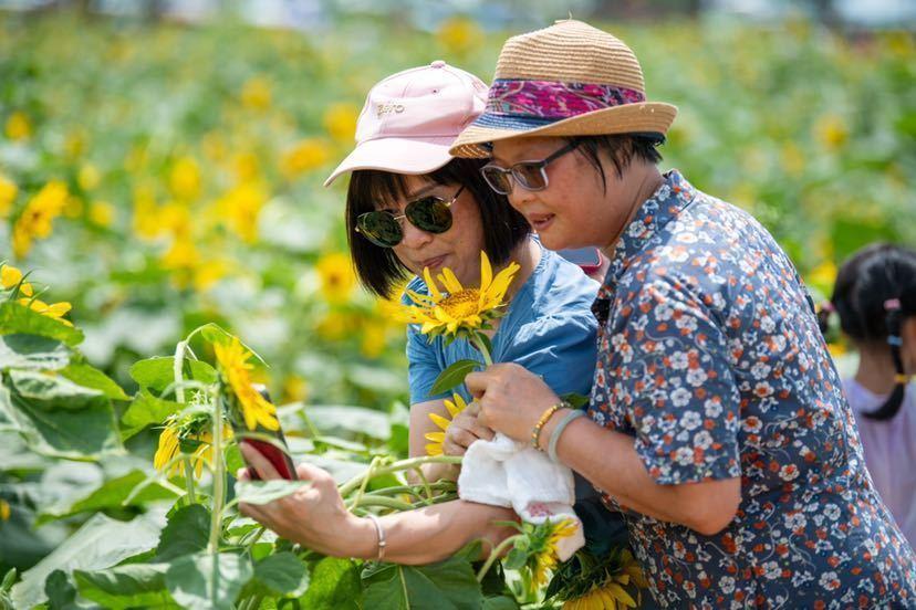 “此次共种植约140亩共21万多株,这次引进的是‘白三道眉’向日葵品种,花盘大籽粒多,观赏效果好。这批向日葵从5月底进入初花期,花期将持续到7月初,大家这两三个星期过来都是最佳观赏期。”该公园相关负责人表示,园区建有“少女塔”“东涌之眼”艺术性建筑,并打造建筑打卡标识,为游客提供独特拍摄打卡点;配套公园栈道、观景平台、长廊、休闲座椅、公厕等设施,让游客群众既体验到更多的休憩功能服务,又满足了高视角观景需求;配置3个停车场,园区总停车容量超300辆,盛花期提供东涌地铁站至官坦农业公园临时接驳车,方便游客前往园区;配置商业休闲点,提供特色彩绘集装箱12组、临时摆卖摊位50个,引入农副产品、非遗文创、特色轻食(特色撑粉、甜品)等业态,既丰富了消费供给,又拓宽了周边村民增收渠道。