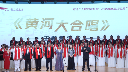 “风在吼,马在叫,黄河在咆哮,黄河在咆哮……”6月7日下午,《黄河大合唱》主题音乐会在广州图书馆举办,舞台上下500多位演员和观众一同高声合唱这段熟悉的旋律,氛围热烈。当天,广图还推出了“重走星海路”快闪演出、“星海的音乐人生”微型装置展、“冼星海和他的时代”主题书展等活动,以此纪念“人民音乐家”冼星海诞辰120周年。