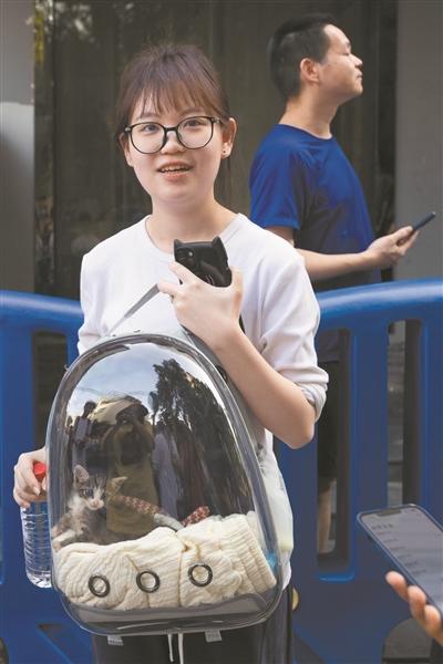 家人带着小猫来接考生。广州日报全媒体记者陈忧子 摄