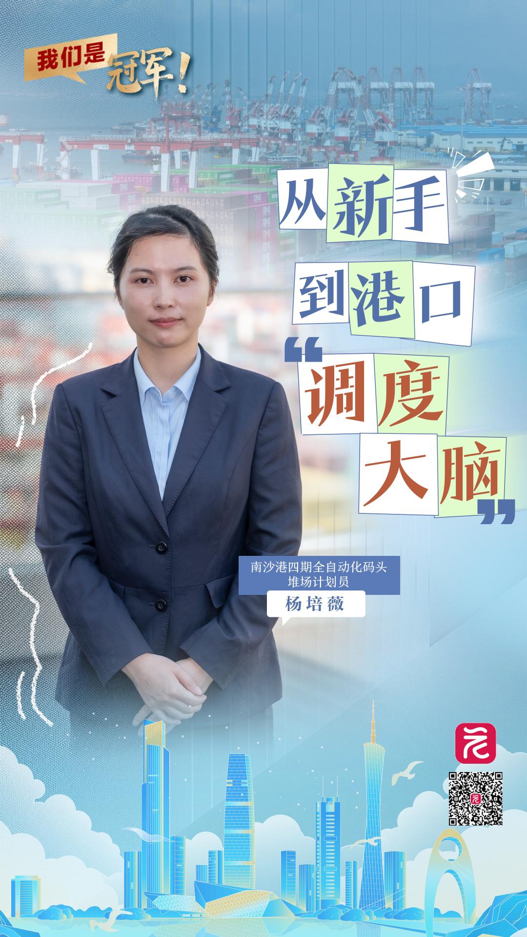杨培薇与广州的缘分始于初中,当时她跟随家人来到这里求学。高考结束后,她如愿进入了广东工业大学的交通运输专业。“在学校时我就对广州港千年古港的历史底蕴印象深刻,毕业后的第一份工作,我就来到了南沙港四期码头。”杨培薇回忆起自己刚到南沙港时,面对的是高大林立的港口设备和错综复杂的码头生产操作系统,内心充满期待的同时也不免有几分焦虑,“我觉得这对我来说是一场严峻的挑战,也是一次难得的成长机遇。”