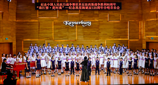 “风在吼,马在叫……”6月14日下午,“珠江情·黄河魂——纪念抗日战争胜利 80周年暨冼星海诞辰120周年大型合唱音乐会”在位于广州增城的恺撒堡音乐厅举行,广州市合唱协会推出《黄河大合唱》(童声版),120名少年儿童开启《黄河大合唱》(童声版)的中国首演。