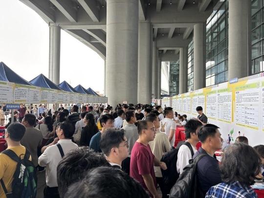 4月举办的“百万英才汇南粤-广州好揾工”南站大型招聘活动现场