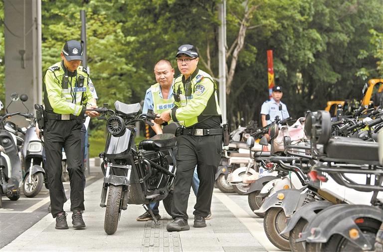 广州有关部门对违规电动自行车予以查处。广州日报全媒体记者邱伟荣摄