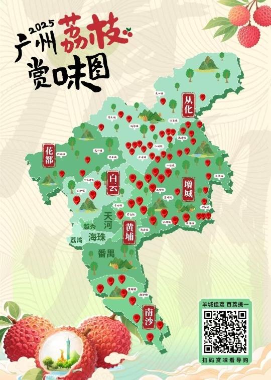 想吃上广州好荔枝,只需扫码开启2025年广州荔枝赏味图,就能踏上充满甜蜜与惊喜的荔枝之旅!