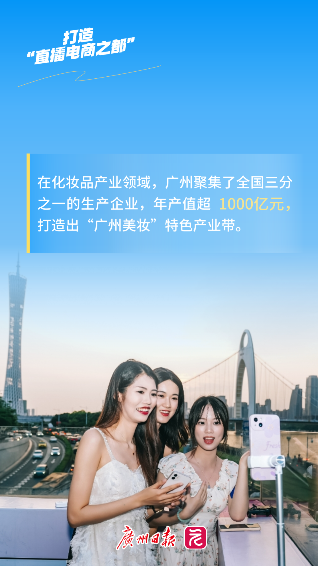 产业生态独具优势。广州人、货、场资源富集,供应链体系庞大,拥有510家传统专业市场,形成了涵盖服装配饰、美妆日化、食品饮料10多个优势产业集群。特别是在化妆品产业领域,广州聚集了全国三分之一的生产企业,年产值超1000亿元,打造出“广州美妆”特色产业带。由此,广州形成了以数字赋能商都基因的直播电商“广州模式”,目前日均直播带货品类超100万种。