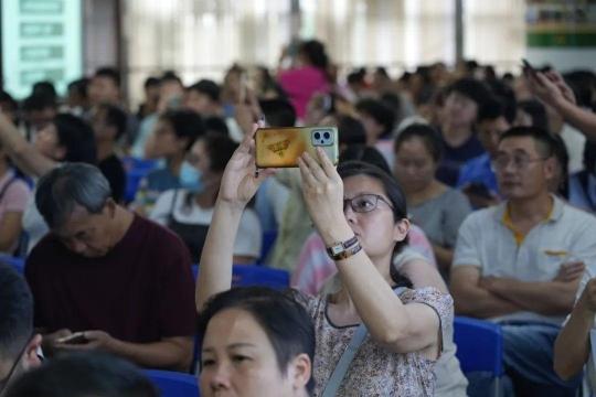 6月22日下午,广州广报高山学校召开了2025届学生家长会,将近800名学生家长一大早就赶来越秀校区,搬好小板凳,听校长冯华宇解读2025年高校招生形势变化以及志愿填报的应对策略。学校的会议室人头涌涌,连走廊上都坐满了人。