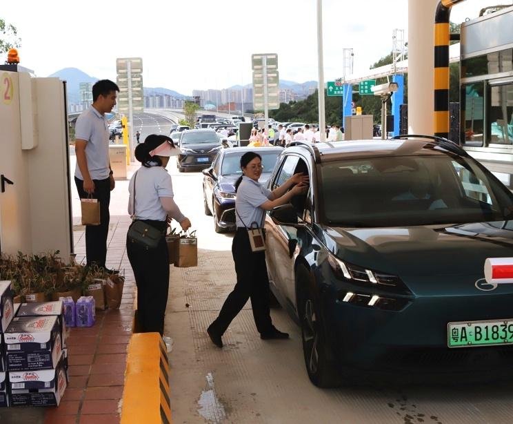 正值荔枝季,五大交通项目集中通车仪式结束后,从化区还向沿途司机送上一份新鲜荔枝,寓意“顺顺荔荔”,为旅途增添一份暖心“荔”量。