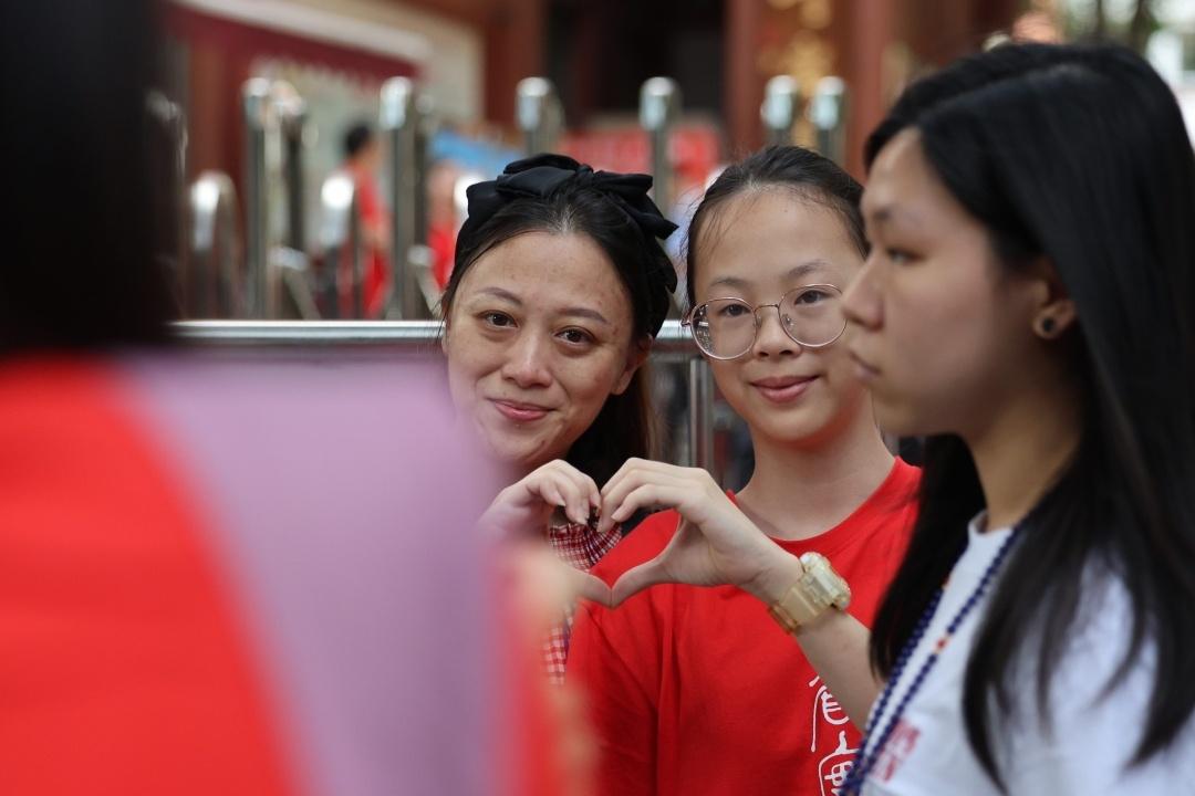 考生临出门摸石狮,教师穿红衣送考,已成广外多年传统。校门两侧各有一只石狮子,寓意“左右都事事平安如意”,考生们上考场前都会摸摸陪伴自己多年的石狮子给自己加油打气。仪式背后蕴含的美好祝福让考生们如有神助,祝考生们金榜题名。
