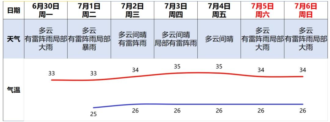 6月30日,市防汛防旱防风总指挥部办公室与市气象局、省水文局广州水文分局对我市的气象水文情况进行了会商。会商意见指出,预计,6月30日至7月2日,受副高边缘不稳定和低层南风影响,雷雨频繁,局部雨势大,并伴有6~8级短时大风、短时强降水和雷电,雷雨间歇时段天气仍然闷热。7月3日起,副热带高压逐渐加强控制,以多云间晴为主,偶有雷雨,天气又趋高温炎热。