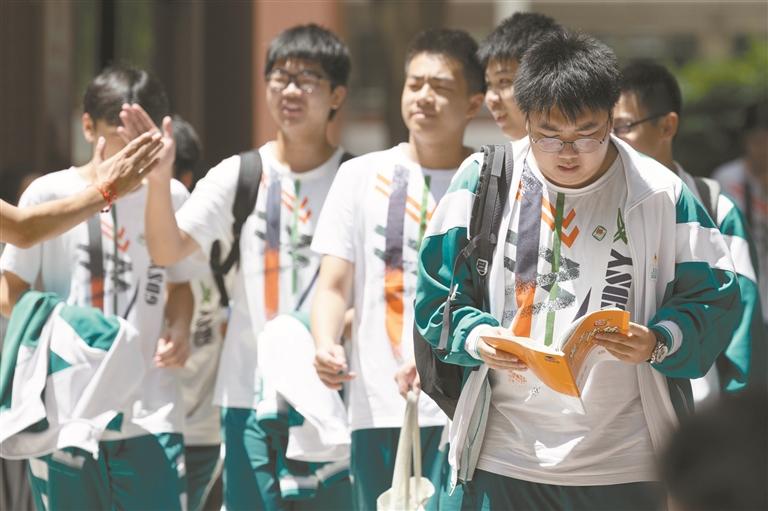 图为中考第一天,广东实验中学(越秀校区)考点,考生们淡定赴考。