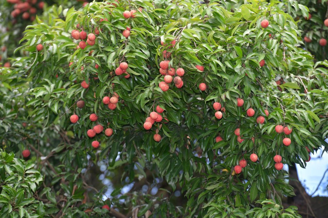 这棵百年古荔枝树长势惊人,高8.5米,平均冠幅约13米,巨大的树冠层层叠叠,仿佛撑开了一把巨大的绿伞,为大地洒下一片清凉的绿荫。饱满圆润的果实在阳光的照耀下,宛如一颗颗晶莹剔透的红宝石,沉甸甸地压弯了枝头,热烈展示着生命的蓬勃。