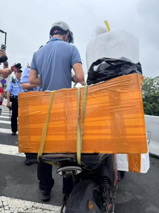 大约15分钟后,另一名骑着电动自行车送海鲜的男子也被执勤交警拦下。“每一处内环路的入口处都有禁令标志,禁止非机动车(含电动自行车)、行人通行。知不知道这个规定?”执勤交警询问道。