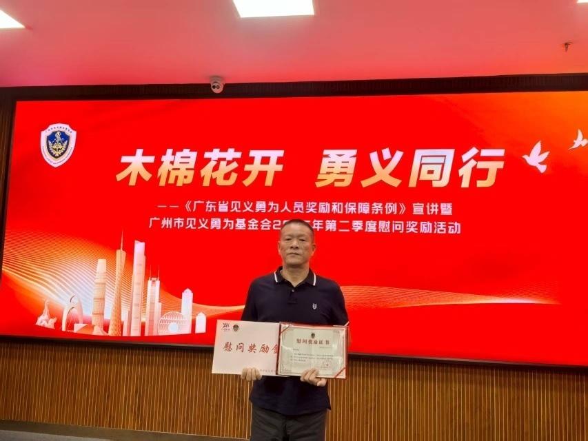 因为朱保林的见义勇为之举,广州市见义勇为基金会近日对他进行了慰问奖励。