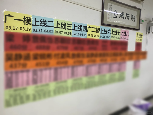 高山讲究的就是一个题海战术,早连晚连数不清的小测。考试具体有多少考不记得了只记得有很多,先月考到后来的周考,还有什么十连考?记不太清了,总之就是非常多非常非常多考试,最记得轰轰烈烈的考试是倒计时一百天的时候,别的学校都是百日誓师,高山是百日考试……