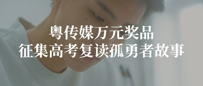 粤传媒万元奖品征集高考复读孤勇者故事活动正在进行中,随手分享赢取万元奖品。