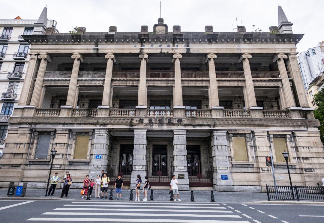 最先映入眼帘的,便是粤海关旧址,因楼顶的巨钟,人称“大钟楼”,它见证了广州海上贸易的诸多“第一”。1685年,清廷设四海关,粤海关最盛,衙署原在五仙门,后迁西堤,之后毁于火灾。1916年重新建成的粤海关大楼,即为今所见的大钟楼,当时以31.85米问鼎“广州之巅”。大钟楼采用双柱、断裂山花、弧形楼梯等巴洛克风格的建筑元素,成为欧洲新古典主义建筑风格在广州的代表。