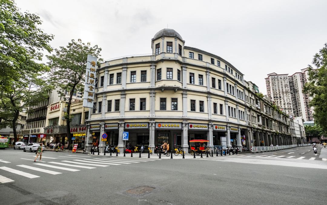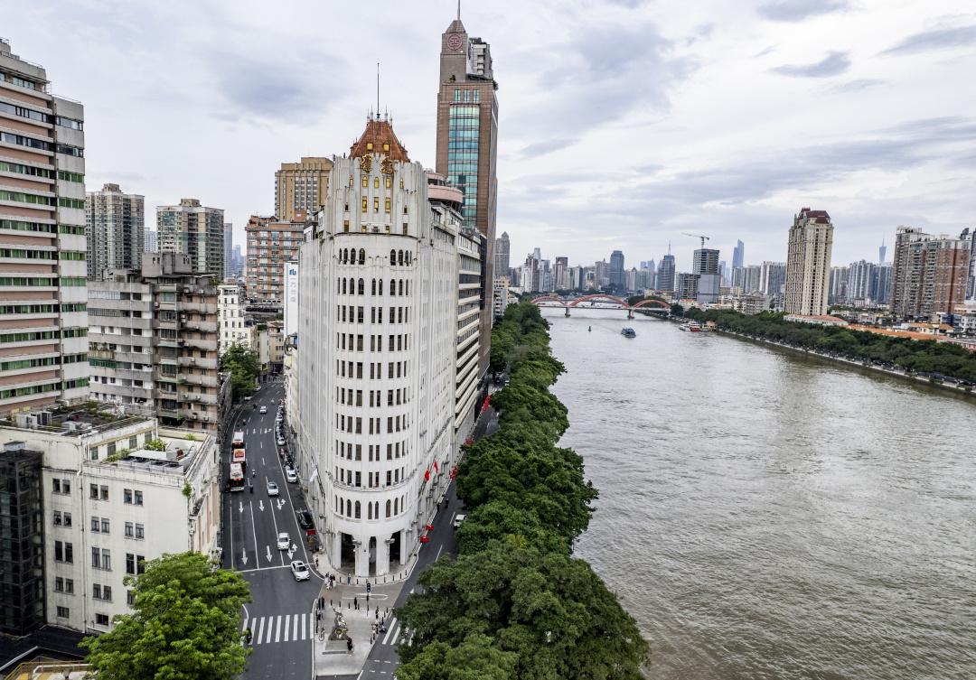 再往东走,是邮政博览馆、南方大厦、爱群大酒店……长堤宛如一条流动的建筑史诗长廊。其中,南方大厦是使用仿石材料的券廊骑楼,中段则以爱奥尼式壁柱,将凸起于墙面的弧形阳台窗划分开来,表达出西方古典风格的审美。而爱群大厦等则展现出现代主义建筑风格的影响。
