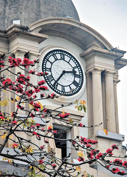 历经百年沧桑,大钟楼如今已成游人打卡点。很多人站在它那高阔的台阶上,留下“霸气”的靓影。高高的台阶,在长堤古建筑群中极为罕见。有学者说,如此设计,既防珠江水患,又显海关地位。即便今日,行人仍须仰首,才能一睹其真容。爱奥尼巨柱,被罗马人比作“庄重贵妇”,常用于殿堂建筑。长堤大钟楼采用此柱,再添花果垂饰,更显庄重威严。